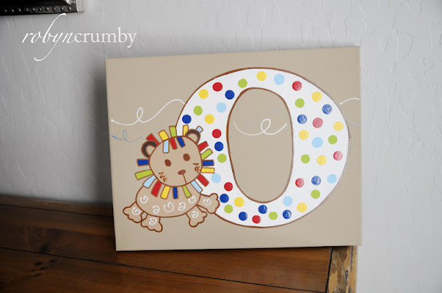 My sister picked out super cute bedding for Oliver. I painted a canvas to match. The little lion on the bedding was too cute to not paint. :) I hope it looks great in his new room. :)